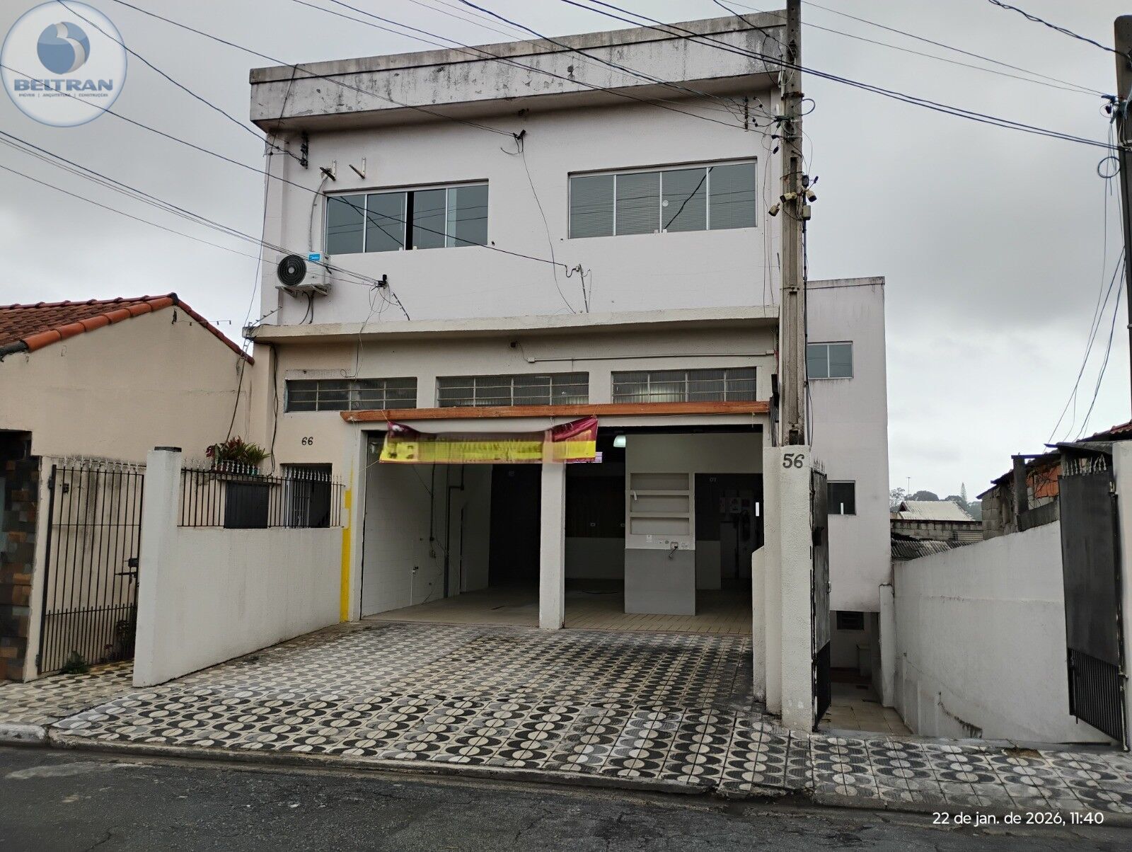 Salão com piso cerâmico, Pé-direito: 2,60 m, sala para escritório, 1 W.C.